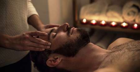 Massage du dos, de la tête, des oreilles, du visage et du ventre. Je suis habillé.